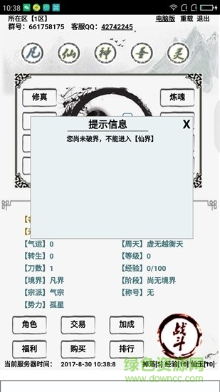 1、游戏中分为五个界面,只有你的修为达到一定等级,境界达到那个位面的资格,才能选择飞升上界;
