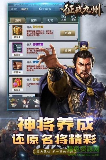 征战九州手游是一款大型角色扮演类手机游戏,游戏以正统三国为背景,玩家在游戏中将会体验到极致的三国历史情节,让你一边玩游戏一边细细品味三国有血有肉的激荡历史。感兴趣的朋友还不赶紧来绿色资源网下载体验吧!