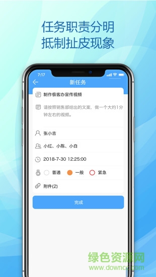 极客办软件是一款便捷的企业办公app,支持在手机上查看详细的任务,项目进度一目了然,轻松提升办公效率,欢迎喜爱的朋友到绿色资源网下载体验!