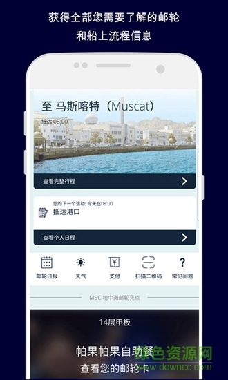 我的msc app是由地中海游轮官方推出的一款服务软件,用户可通过该平台享受智能便捷的游轮旅途,手机在线查看活动及服务,支持在线点餐,最新航程信息及时更新,个人消费一目了然,欢迎来绿色资源网下载!