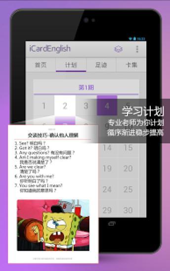梯度性编排学习计划,每天课程高度浓缩成几张多媒体学习卡,长期跟着计划学习和练习,英语口语水平会在不知不觉中突飞猛进。