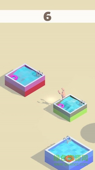 有趣的休闲娱乐游戏。灵感来自之前火爆微信朋友圈的小程序《跳一跳》。玩法很有趣,目的就是不断让小人跳跃到下一个泳池,按住屏幕不放来完成蓄力,然后松开手小人就会自动跳出去,按住屏幕越久小人就会跳的越远,游戏非常考验玩家的空间想象力