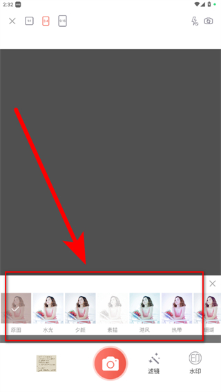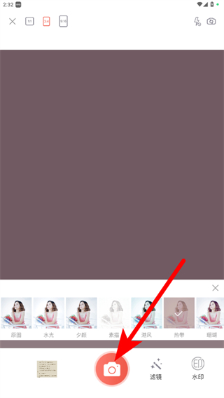 4、选好滤镜后,点击下方红色的相机按钮,即可进行拍照。