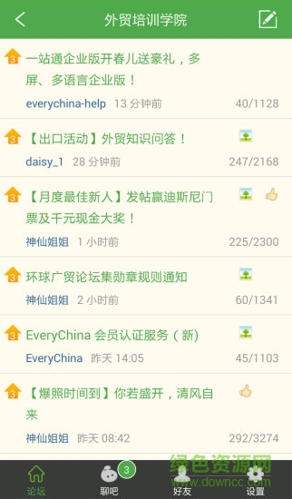 一款外贸应用,实时为用户提供各种外贸行情资讯,了解外贸相关优质的产品,还可以和外贸商家进行在线沟通,支持一键查看询盘、上传产品照片等功能。通过论坛贴吧功能模块,用户可以认识一群和你一样从事外贸行业的小伙伴,和他们分享经验、沟通交流,让你从精彩的帖子中了解更多外贸相关知识。