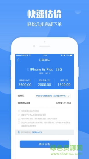 51回购是一款线上智能信用回收平台。用户通过一键检测、智能估价、信用评估审核后,即可得到平台先行预付的定金。平台致力于在线智能解决用户信用快捷兑换问题,后期您可以自由选择是否寄售手机。