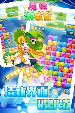 魔法消星星安卓版是一款卡通可爱画风的休闲手游。经典而有趣的消除游戏,清新界面,可爱的人物角色,滑动手指,感受愉快的休闲时光,操作简单,玩法有趣,还能使用特殊道具,与小伙伴展开激情的刷分对决,快来试试吧。