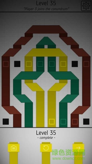 游戏中玩家的目标就是翻转各种不同颜色的丝带,直到丝带包裹住其他的检查点即可,游戏中过程并不复杂,只需要在屏幕中三个按钮之中操控即可。