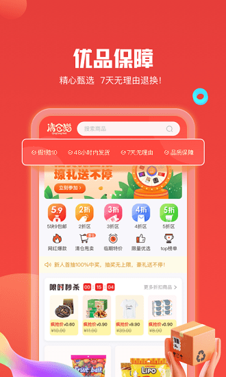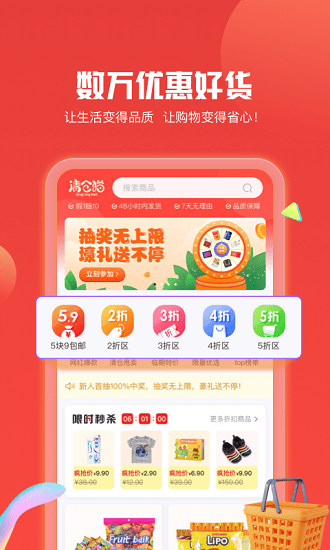 清仓猫软件是非常好用的一款手机购物平台,在这里用户们能够找到超多种类的商品进行购买,还有非常多的购物折扣让用户们能够在购物的时候省钱,每天还有非常多的购物活动让用户们随意参加,超级好物九块九包邮带回家,超级的好用。