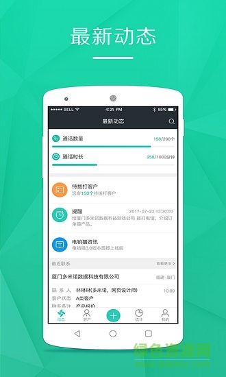 电销猫是一款智能好用的手机销售app,精准营销数据统计订单管理等多种功能,简单实用大大提高工作效率。快来绿色资源网下载体验吧!