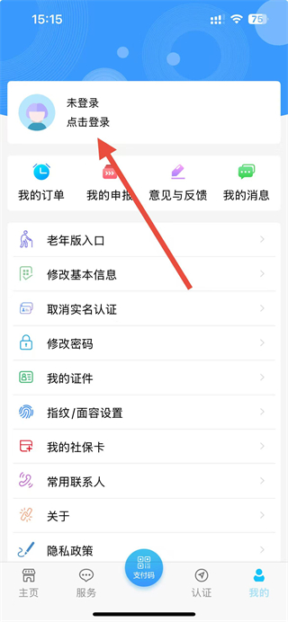 2、在我的界面中,点击上方的登录按钮,跳转至登录相关页面。