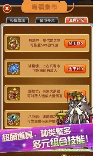 4、行走江湖难免会跌打损伤,走过路过就不要错过了,快快走进喵镇集市补给一下。超萌道具,种类繁多,各位客官随意挑选。