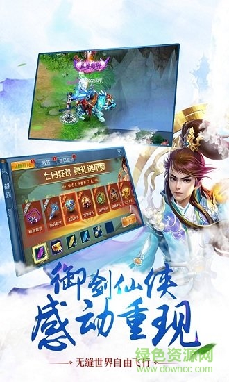 4、登录七日赠送极品神兵,首天赠送紫装乾坤项链,次日赠送极品神兵碧空,七日赠送元宝*9999和极品猛虎肩甲,总计赠送18000元宝;