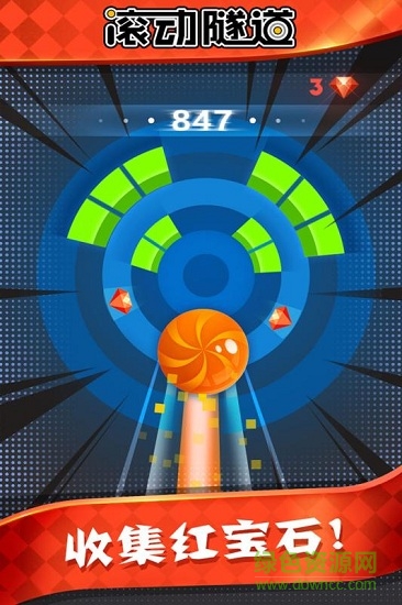 滚动隧道中文版是一款敏捷类的休闲街机游戏。玩家需要控制好小球,穿越各种不断旋转的机关障碍,尽可能获得更高的分数。 游戏画风简约清新,操作简单易上手,但是获得高分非常考验玩家的手速和反应。