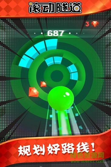 1、重力感应类型控制玩法,在炫目的隧道中小球进行极限滚动,全新的游戏体验;