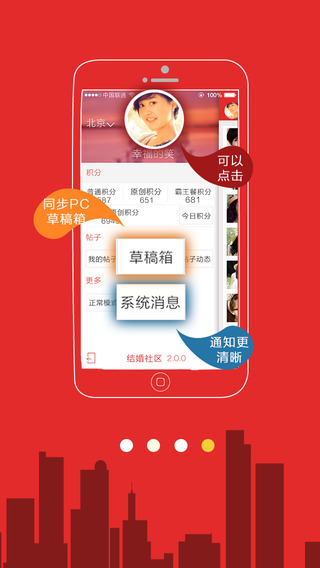 结婚社区是一款结婚分享交流平台。在这里你能获得很多筹婚知识,省钱防消费陷阱;在这里你可以收获霸王餐,0元筹婚;在这里你可以赚积分,兑抵金券抵扣套系款,兑各种积分礼品,参与积分竞拍;在这里你可以参与群聚和JMS一起吃喝玩乐,收获姐妹情深;在这里你可以收获各种签到签退探店活动礼物!