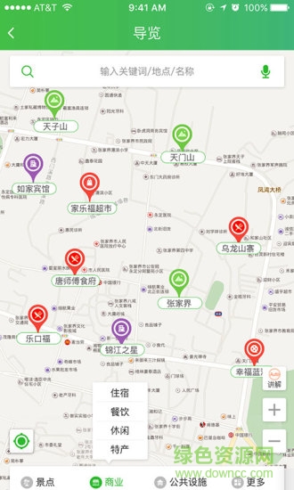 森林公园周边商家景点搜索功能,游客打开手机即可极速查询景区卫生间、景区商家,医务室,出入口,休息区等位置信息;