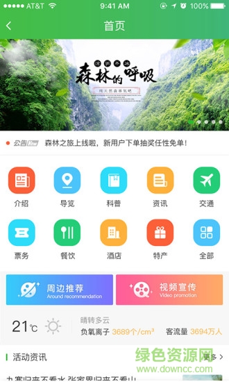 森林之旅app是一款打造绿色生态的旅游服务平台。全景式景区地图,各类生态森林景点推荐,详细的公园景区讲解攻略,实时天气、门票预订、特产购买等多种便捷功能,带你轻松游遍各大森林公园景区