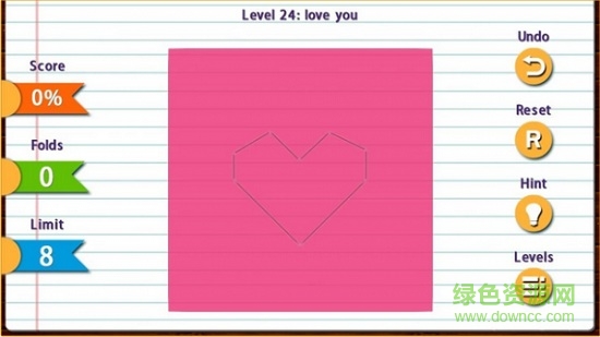 《折纸谜题 paper Folding Origami》是由BiStar制作的的一款益智休闲小游戏,游戏要求玩家在一定步数之内按照规定折好所给定的纸张,要求操作者工作尽可能准确,最大限度的适应画在纸板上的图案形式。所以请在《折纸谜题》中享受折纸的乐趣,并尝试把它带到我们的生活吧!