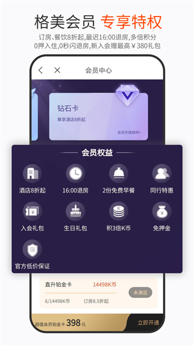 格林豪泰手机版是格林豪泰酒店的手机客户端软件,为方便客人预订酒店最新推出的一款软件。软件功能强大,操作简单,覆盖全国400多座城市的1600多家门店,使用它,可以快速找到最近的格林豪泰酒店,并能快速预定,度假旅游抢房神器。赶快下载体验吧!