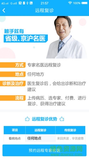 在线复诊:足不出户,即可完成与省级、京沪三甲名医预约,通过图文、电话、视频等形式完成在线复诊,获得优质医疗技术服务的同时,提高看病效率、降低了看病费用、缩短看病时间。