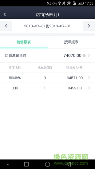5.员工管理:店铺所有员工资料、课程、上课情况、业绩等信息管理