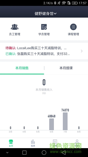 4.报表管理:店铺收入、课时、学员、教练等统计分析数据
