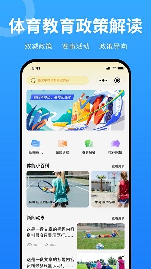 中体小冠军官方版是一个体育教育服务平台,用户下载app之后就可以在线了解青少年体育行业的最新资讯动态,平台有非常专业的政策解读;海量赛事课程满足不同地区青少年的运动需求,帮助大家从小养成爱运动的好习惯,增强体魄。欢迎有需要的用户下载中体小冠军app看看吧。
