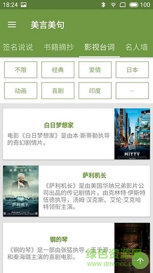 2.推荐,名言语录,签名说说,书籍摘抄,影视台词和名人墙6大模块。