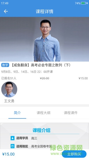 题麦狼课堂app是一款高中数学在线学习软件。覆盖了高一到高三阶段所有数学知识点,名师在线授课,为你解难答疑。帮助学生们轻松学习高数知识,提高成绩不再是难题!快来绿色资源网下载使用吧。