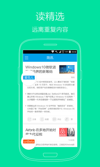 内容可分享到微信、微博、qq等社交网络,也可以在应用内部讨论互动。