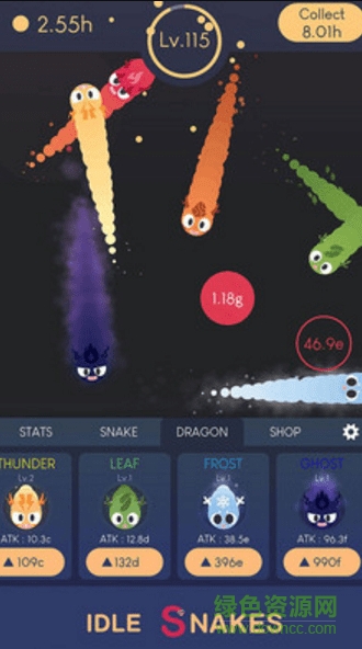 只要点击放出蛇,收集能量,培养蛇蛇们长大,不断的吞噬球球,成长到更高级!轻松点一点,蛇蛇不断长大,吞噬星空中所有的球球,成长成长再长大!