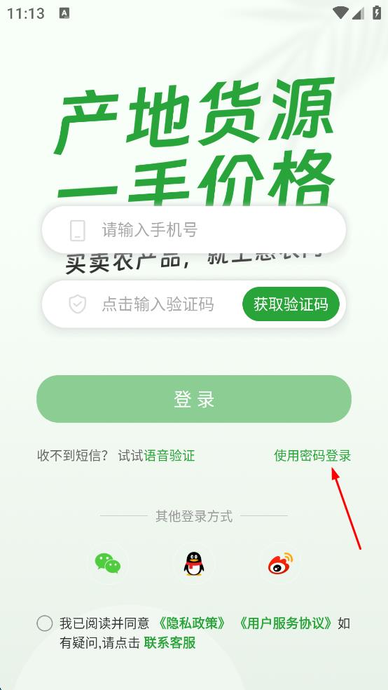 2、进入登录界面后,点击使用密码登录选项。