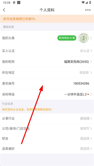 3、在个人资料页面,可对我的头像、我的昵称、所在地区等信息进行编辑修改,完善资料内容。