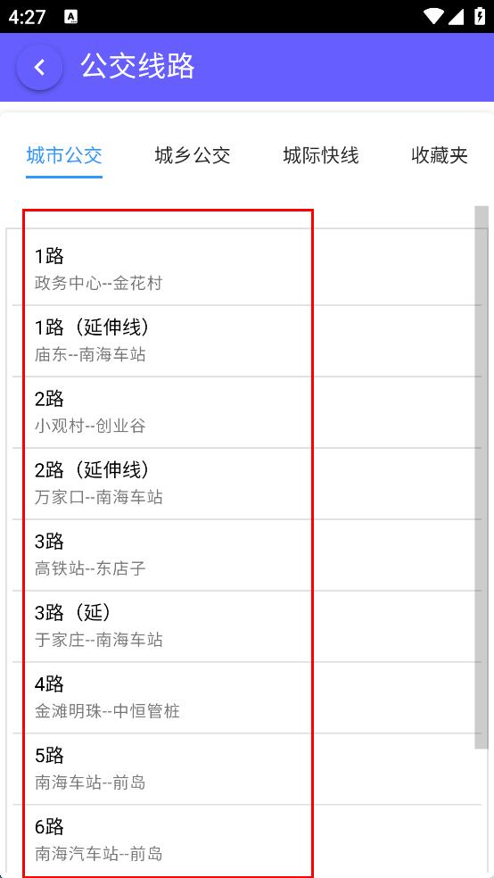 2、在公交线路页面,浏览城市公交列表,找到“1路”公交,点击进入1路公交的详情页面。