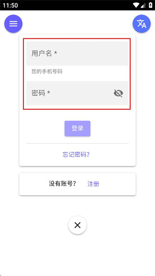 3、在用户名输入框填写手机号码,在密码输入框填写对应的登录密码。