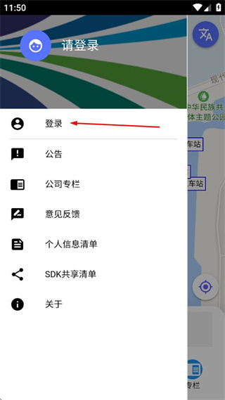 1、打开该软件,点击页面左上角的菜单按钮,展开功能列表,找到登录选项。