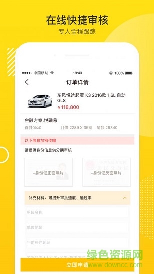 选择车型,提交个人信息与申请资料