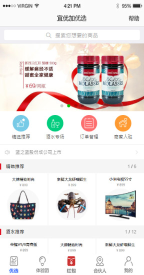 宜优加APP提供零售及消费服务的两大特色功能是优选商城、体验式团购,