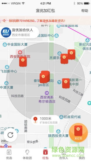 宜优加打造的基于社群的广告信息服务,包括红包广告及社区信息服务。