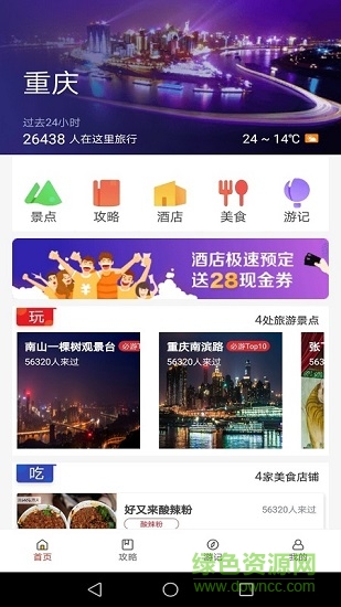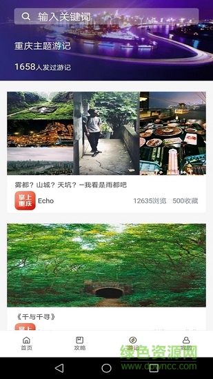 掌上重庆网一款让你畅游重庆的APP,旅游好攻略,首页展示了景点,攻略,酒店,美食,游记等类型,让你时时刻刻都在了解重庆的大好风光,让你不再烦恼因假期不知道要去哪里旅游而苦恼,掌上重庆网为你解决了所有烦恼。