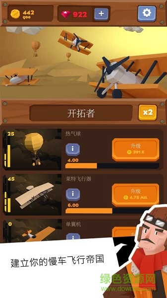 无垠天空是一款模拟人类飞行技术进步的手游,你可以从木质的飞机起步一直到星际中的高速太空战机,这些技术上的进步都要靠你优秀的经营来实现,每个小的阶段结束后你的飞机都可以迎来一个跨时代的变化,想要体验的朋友快来绿色资源网下载吧。