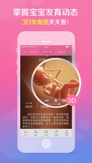 1.3D发育图:每天一张宝宝发育3D图,随时掌握宝宝发育动态。