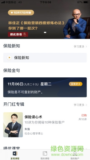 保险赢手机版是针对保险人设计的一款在线学习平台,超多行业课程不断更新,权威老师在线授课,课程预览在线报名参与,深度学习更多行业知识,提高个人的工作能力,欢迎来绿色资源网下载!