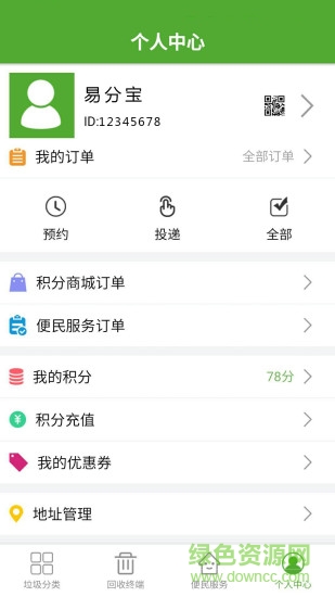 易分宝手机软件是一款非常好用的垃圾分类管理app,可以进行垃圾分类投放的预约,在保护环境的同时还可以获得积分奖励,欢迎喜爱的朋友到绿色资源网下载体验!