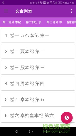 此软件收录《史记》的全部文章,应用现代计算机技术,对文章以良好的排版格式进行展现,使《史记》爱好者能够以良好的阅读体验欣赏全部文章。