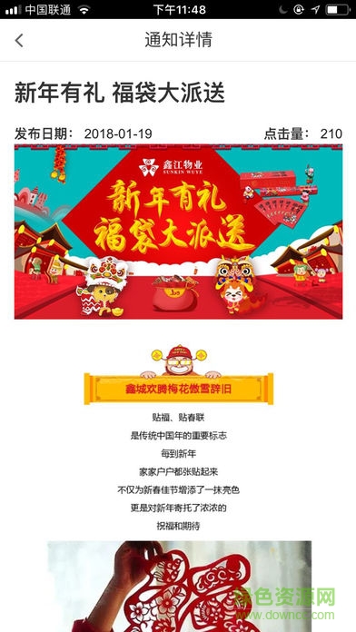 1. “通知”栏中将随时推送小区的各类消息,比如便民服务、文化活动、节日祝福、缴费通知、停水停电通知等等,方便业主及时了解小区动态