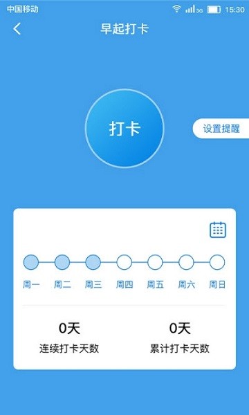 -- 提供打卡日历,打开电子日历的话则可以查看一个月每一天的健康打卡情况;