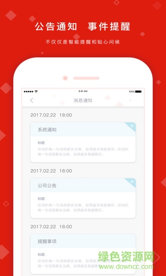 2、公告通知,事件提醒,不仅仅是智能提醒和贴心问候;