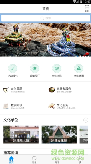 泸县文化云是一款针对泸县本地打造的城市文化信息服务平台,文化活动举办宣传,场馆预约购票文艺活动动态信息时刻知晓市民积极参与。快来绿色资源网下载体验吧!