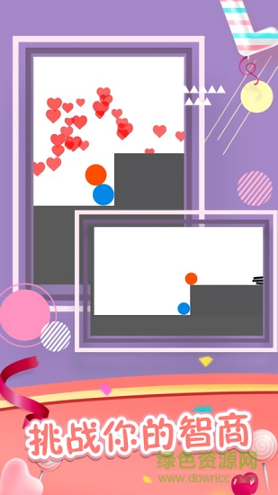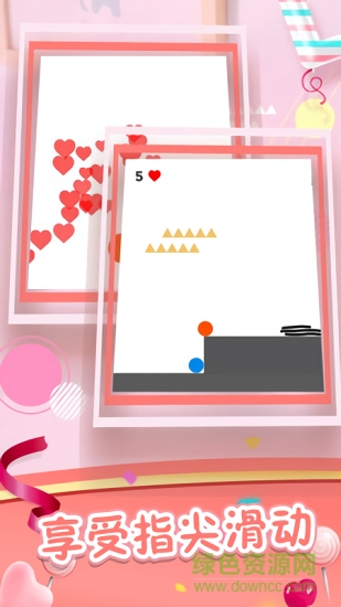 《恋与球》是一款物理模拟的画线游戏,游戏中有蓝球与红球玩家的目标就是通过在手机中画路径线的方式让两个球碰到一起,游戏上手简单玩家仅需一次操作就可以完全掌握游戏操作,游戏十分考验玩家的空间感跟逻辑思维能力是一款非常益智的小游戏,适合全年龄段的朋友一起游戏!手残党不再纠结,这里只拼思维!摒弃炫酷的造型和绚丽的色彩,让游戏回归游戏本身!划线规避障碍、创造条件,让相爱的球球相遇!